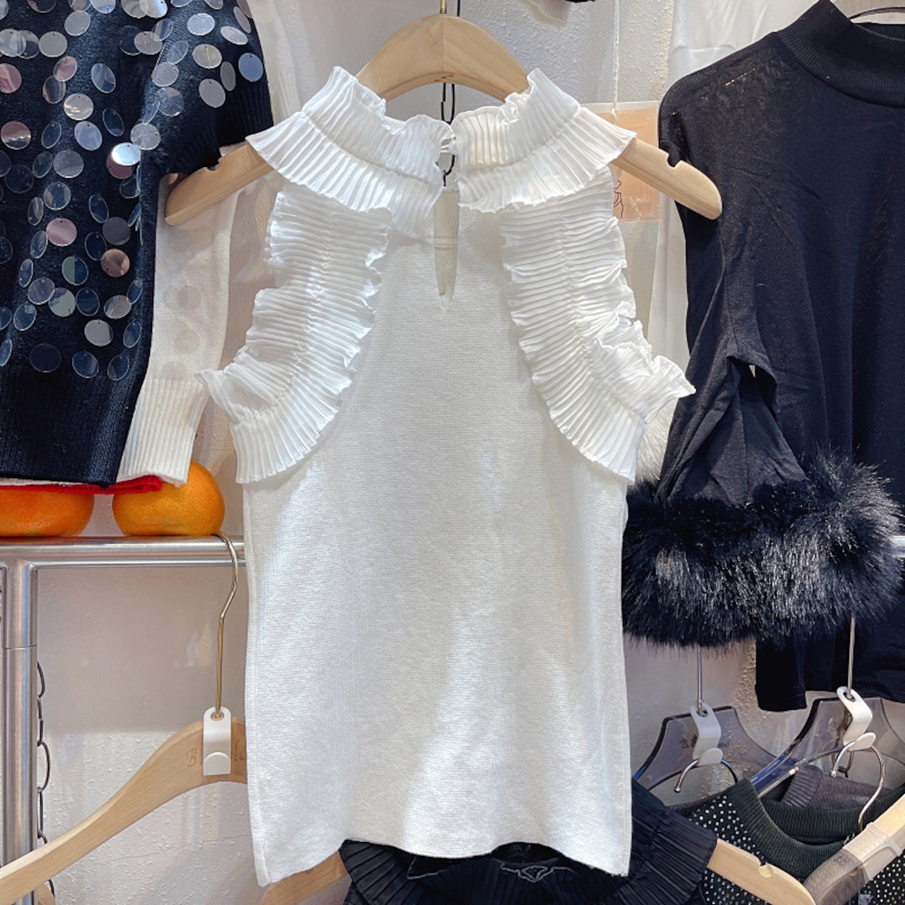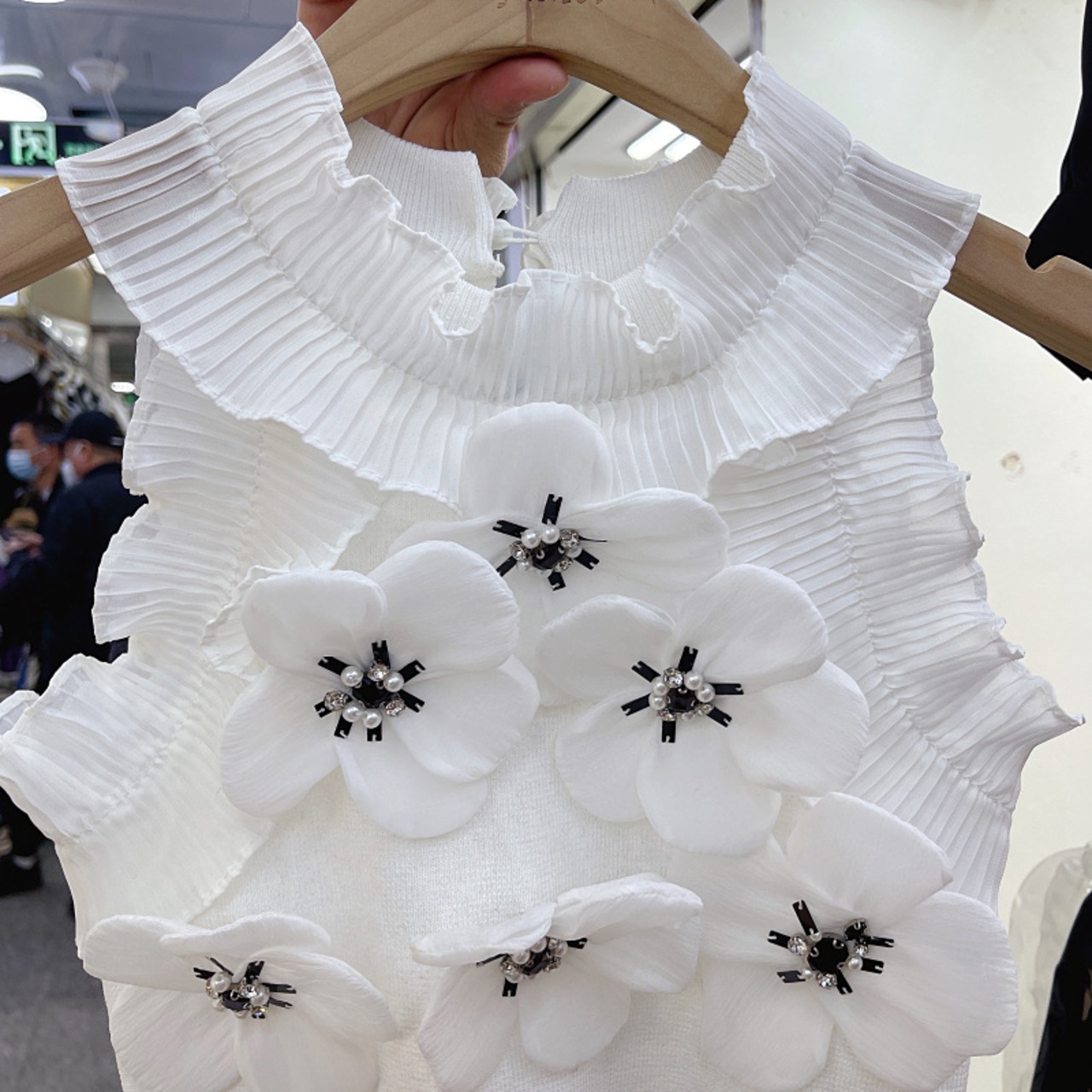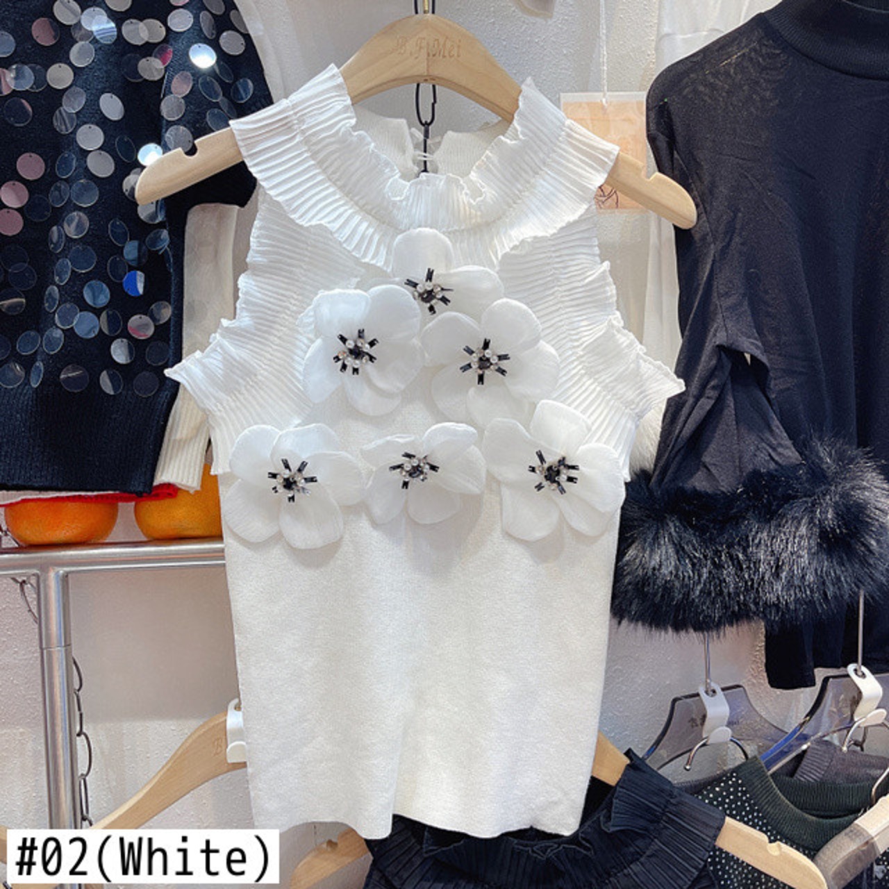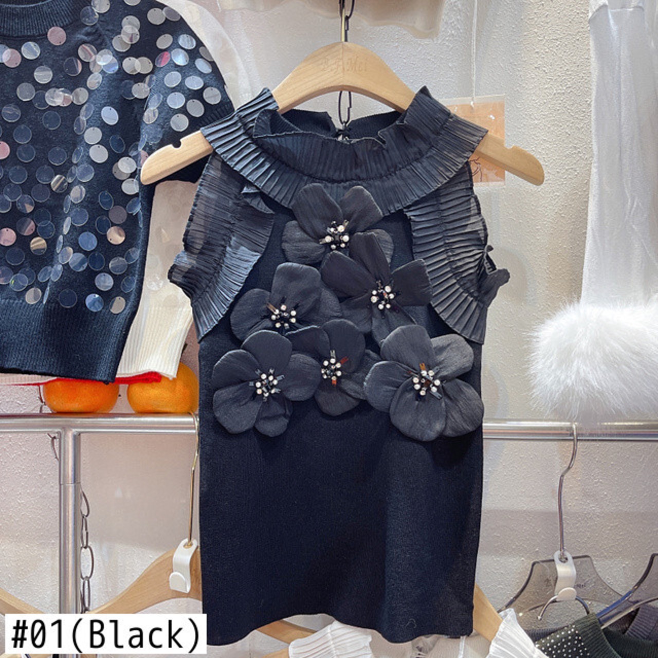 Nomikuma 春夏 2023 底入れ ニット ベスト シックなフリル パッチワーク レディース トップス スリム 甘い 3D 花 タンクトップ 大人ガーリー スウィート キュート カジュアル スプリング 春物 サマー 夏物 フラワーデザイン kor58261151025