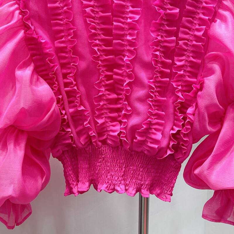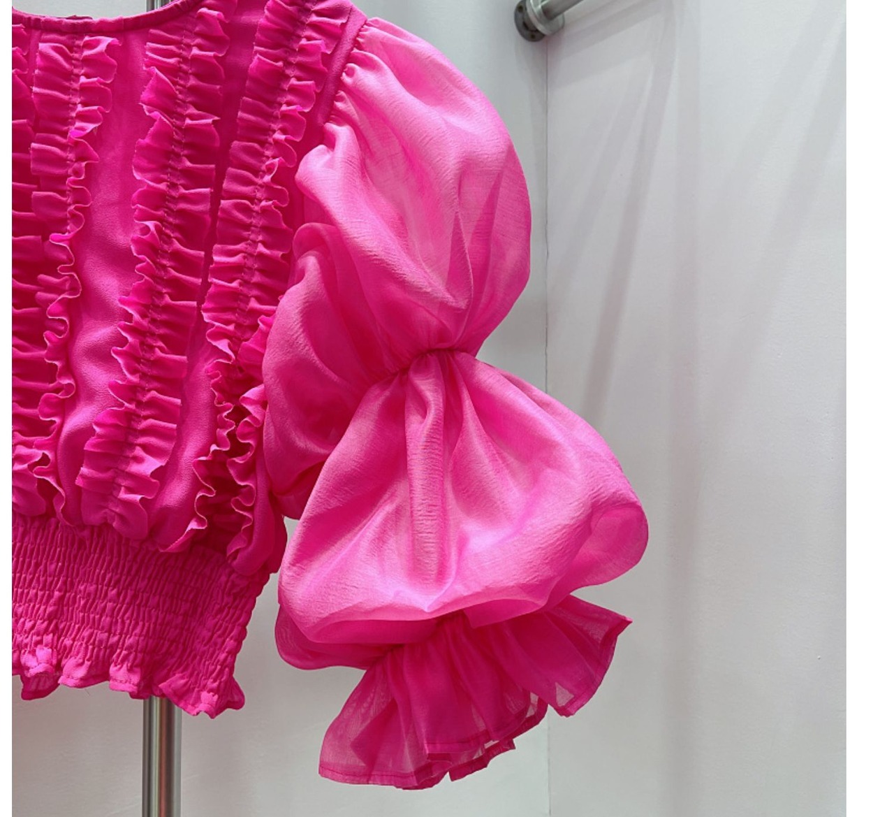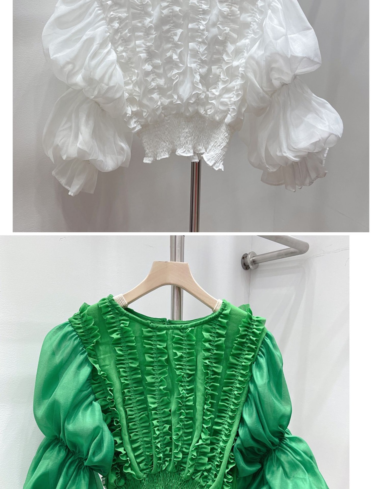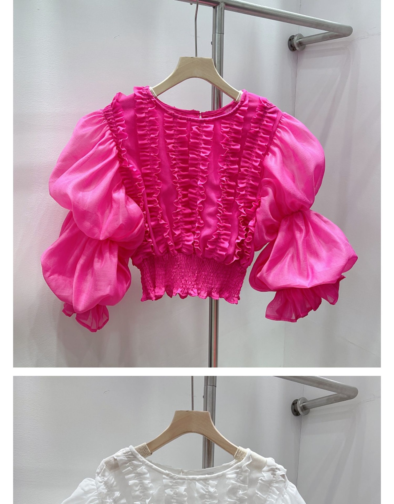 Nomikuma シックなフリル パッチワーク ショート ブラウス トップス ランタン スリーブ O ネック プルオーバー 2023 春夏スウィート ドール シャツ ランタンスリーブ 大人ガーリー キュート カジュアル スプリング 春物 サマー 夏物 Oネック kor76759690817