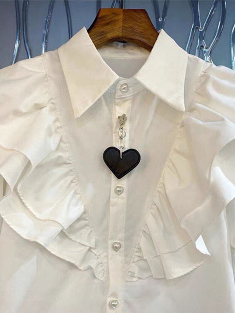 Nomikuma シックなパフスリーブ春秋ブラウスシャツフリルパッチワークターンダウン襟女性ストップ 2023 スプリング 春物 オータム 秋物 kor61429927448