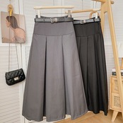 Nomikuma ウエスト 女性 スカート ベルト付き 春 パッチワーク カジュアル Aライン スーツ プリーツスカート ファルダス スプリング 春物 ハーネス kor65583797081