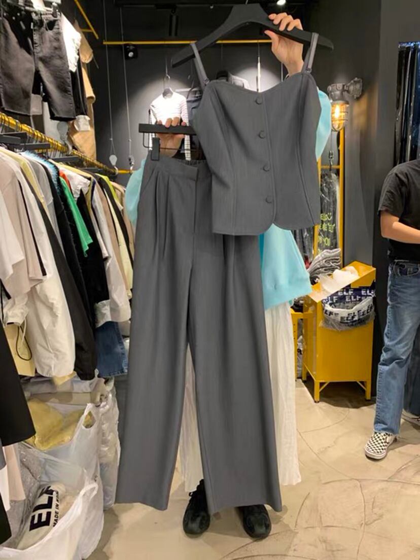 Nomikuma 春夏ツーピース女性服無地ノースリーブスリングベスト + ウエスト因果ロングパンツセット スプリング 春物 サマー 夏物 ソリッドカラー kor31428824078
