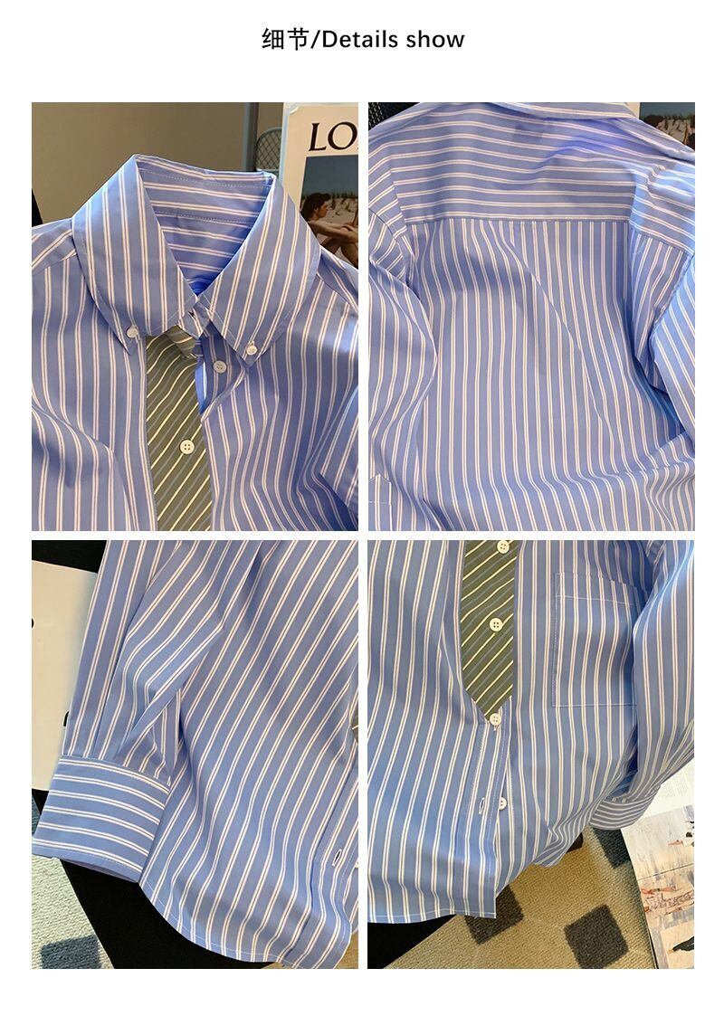 ノミクマ ストライプ ヒットカラー パッチワーク ターンダウン カラー ブラウス レディース 春 シャツ カミーサ スプリング 春物 kor69625212540