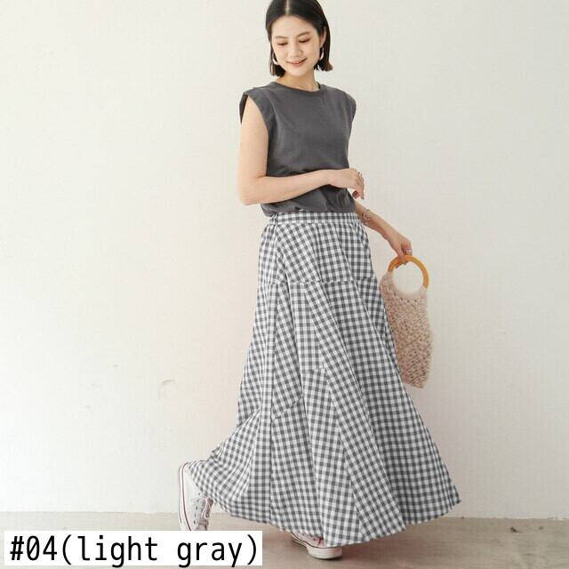 Nomikuma チェック柄スカート女性弾性ウエスト因果 A ラインスカート春夏ボトムス段 Faldas Moda エラスティック 伸縮 スプリング 春物 サマー 夏物 Aライン kor10479907522