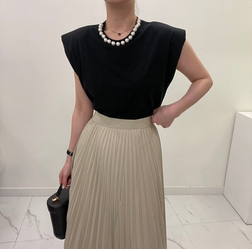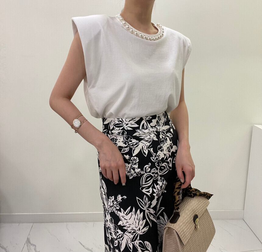Nomikuma シックなビーズ O ネックノースリーブ女性 Tシャツベスト春夏無地グラフィック Tシャツ スプリング 春物 サマー 夏物 Oネック ソリッドカラー kor32040887349