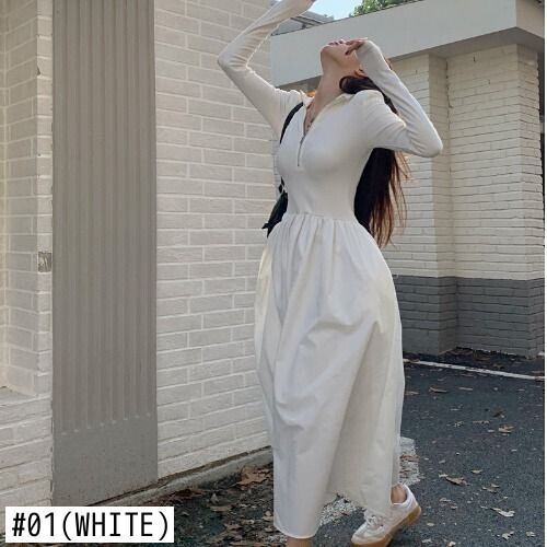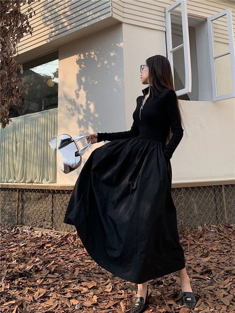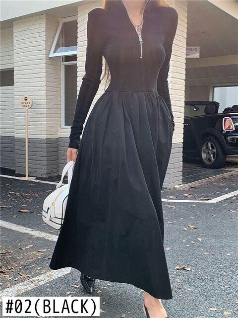 Nomikuma セクシーなスリムジッパースタンドネック長袖女性ドレスウエストパッチワーク因果 A ライン Vestidos ロング Aライン kor59701015125