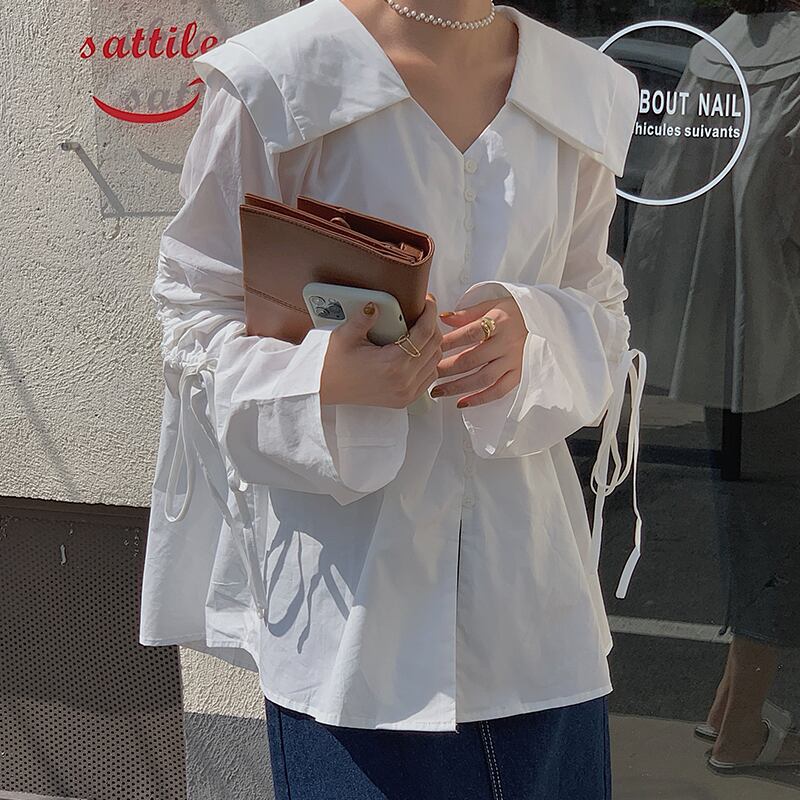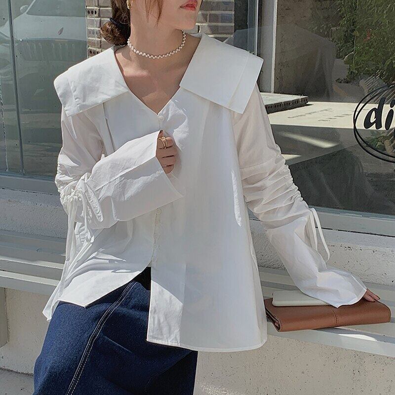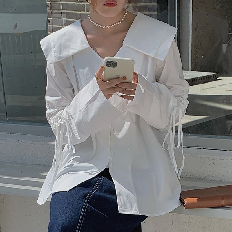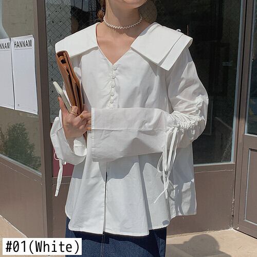 ノミクマ 巾着ひだ フレアスリーブ ブラウス レディース 春 因果 二重折衿シャツ スプリング 春物 kor5698043162
