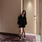 ノミクマ因果ミディアムロング女性スウェットシャツシックなちょう結びストラップレス長袖ジャンパー春パーカートップ リボン スプリング 春物 kor26470371983