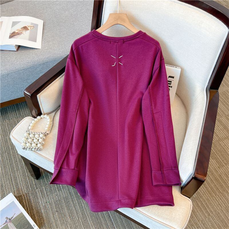 Nomikuma Oネック プルオーバー 不規則なスプリット スウェットシャツ トップス レディース 因果 春 長袖 スタイル トップ ジャンパー ロング スプリング 春物 kor17786660683