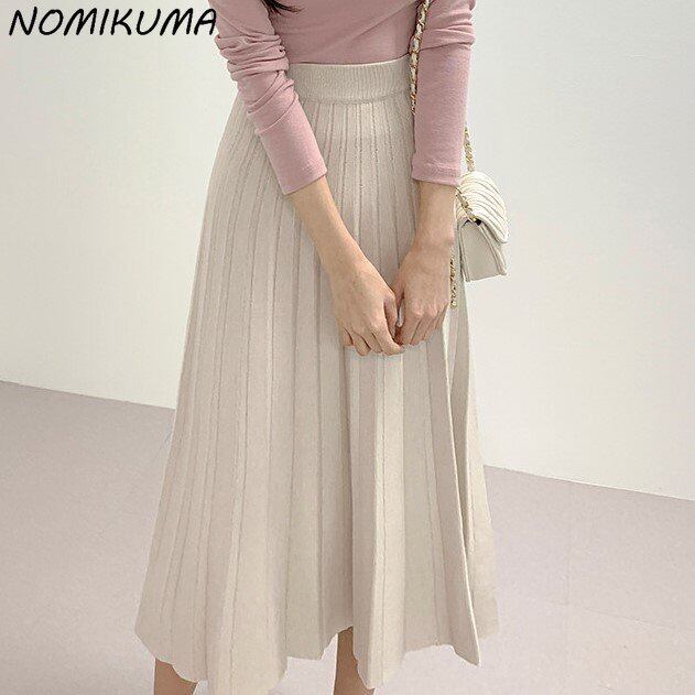 Nomikuma ウエスト女性セータースカート秋冬無地因果 A ラインプリーツ Kintted スカート オータム 秋物 ウィンター 冬物 Aライン ソリッドカラー kor48726094156