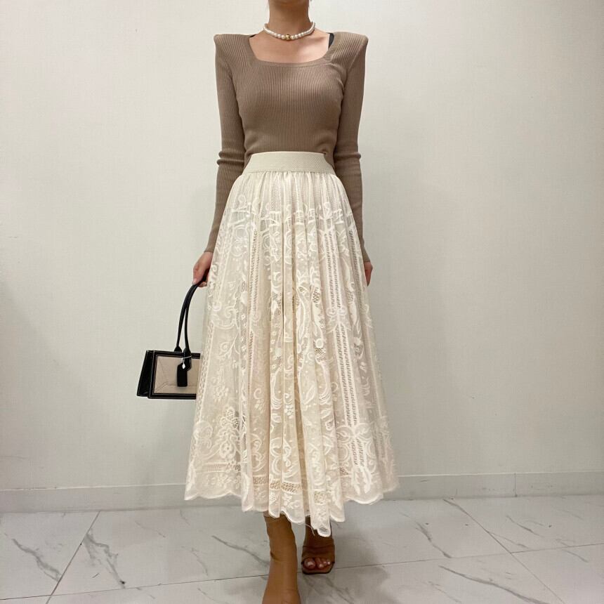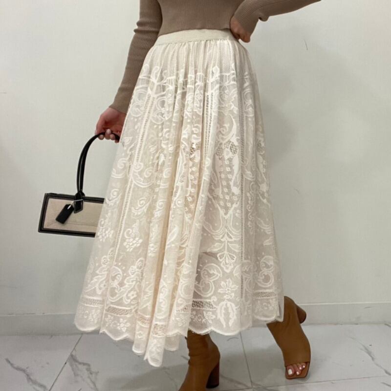 ノミクマ レースホック シック 春 スカート ボトムス ウエスト カジュアル Aラインスカート ファルダデ スプリング 春物 kor72141552618