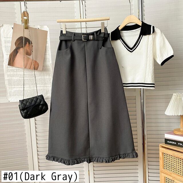 ノミクマベルトウエスト女性スカートフリルパッチワーク A ラインスカート春夏ファルダモーダ スプリング 春物 サマー 夏物 ハーネス Aライン kor79955625190