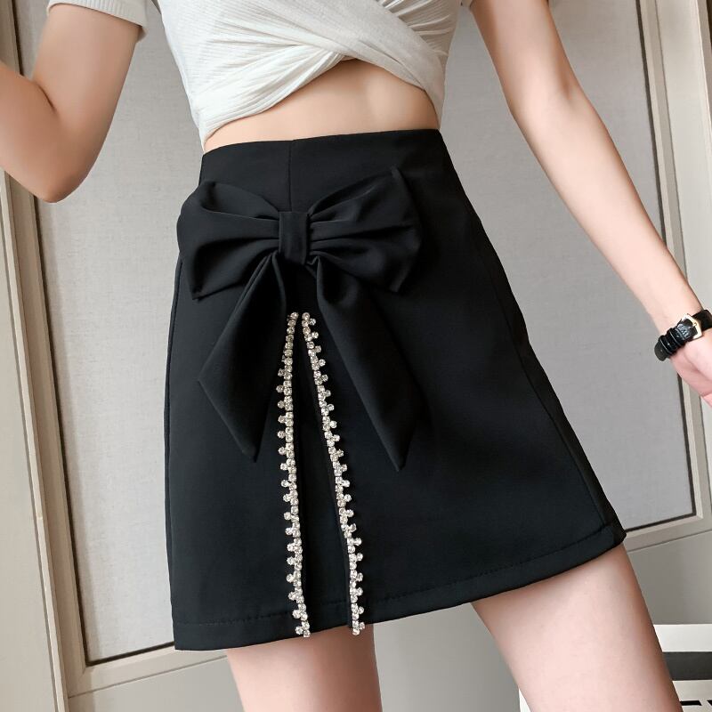 Nomikuma 不規則なスプリットスカート女性春夏ボトムスウエストシックなちょう結びダイヤモンド A ラインミニスカート リボン スプリング 春物 サマー 夏物 Aライン kor49571676526
