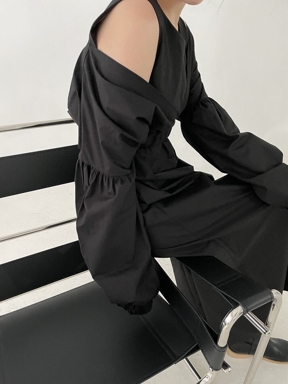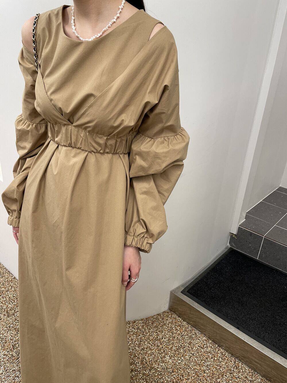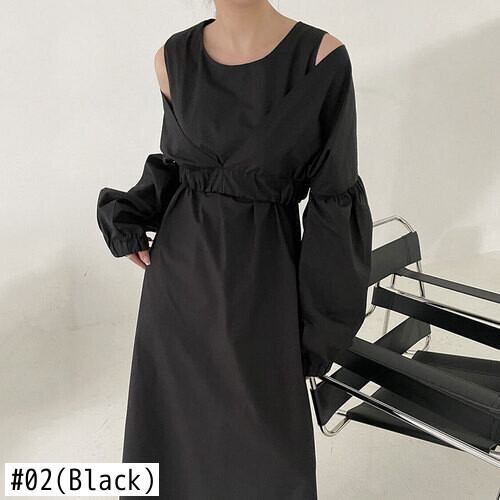 ノミクマ春ツーピース女性セット V ネックパフスリーブショートトップス + O ネックウエスト A ラインタンクドレス スプリング 春物 Oネック Vネック Aライン kor71324584952