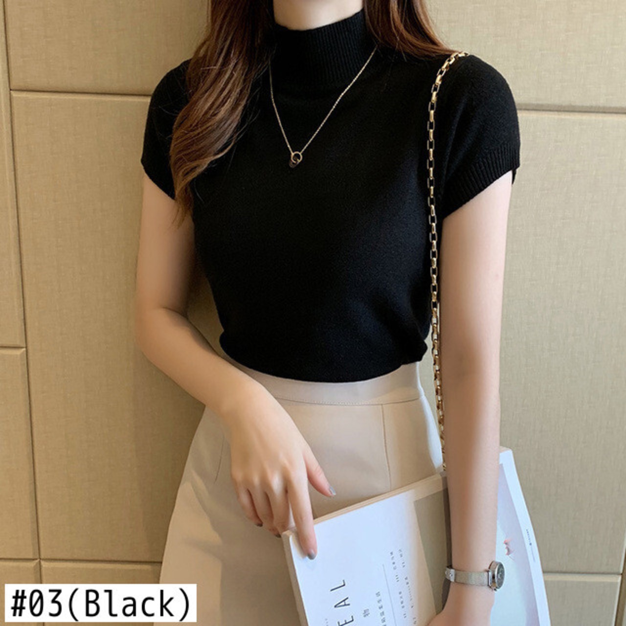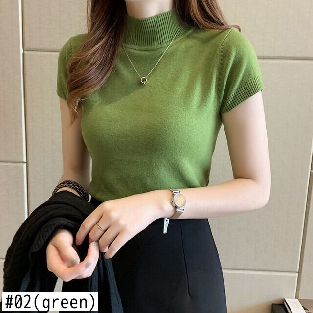 ノミクマ 春夏 ニット 半衿 半袖 スリム ストレッチ トップス 無地 セーター セーター ショート ハーフスリーブ スプリング 春物 サマー 夏物 ソリッドカラー kor49864287523