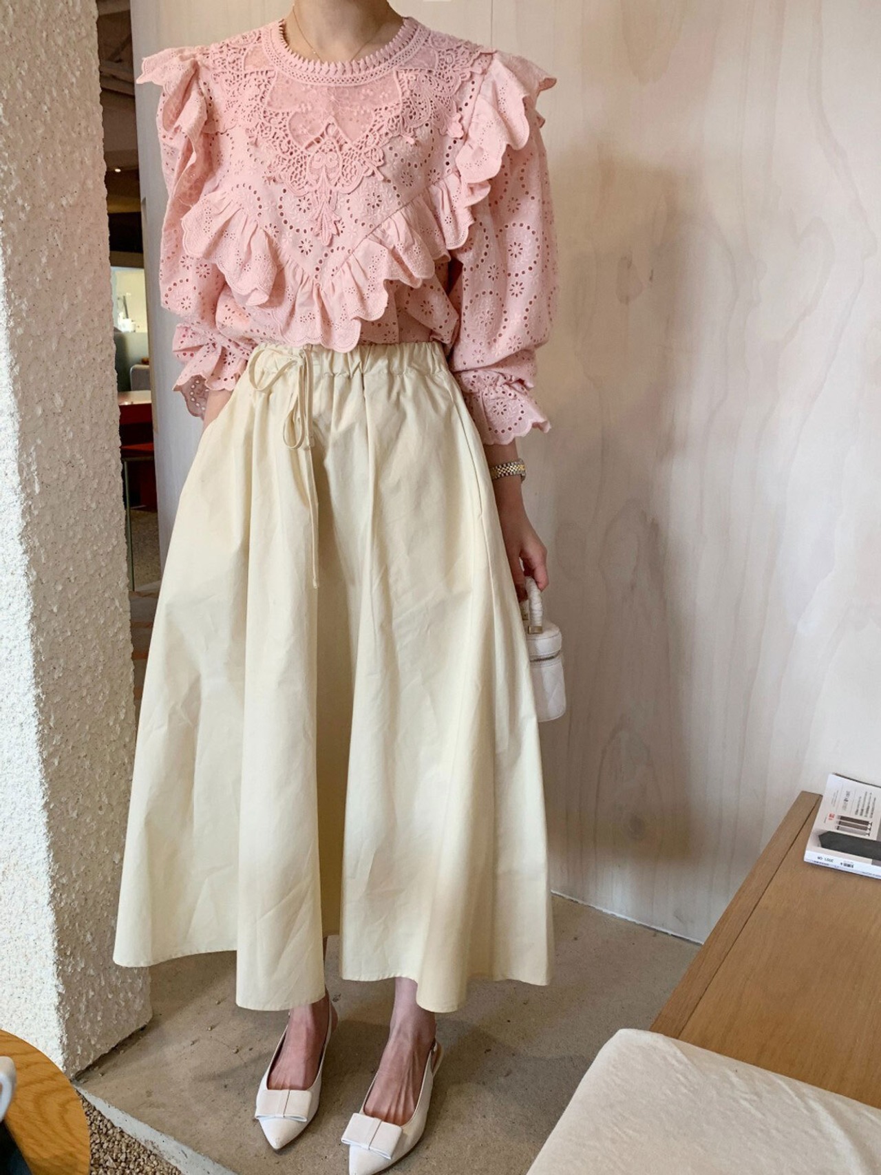 Nomikuma シックな無地春スカート女性レースアップウエスト因果 A ラインスカート段 Faldas Moda スプリング 春物 Aライン ソリッドカラー kor27486395420