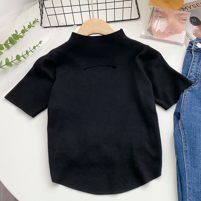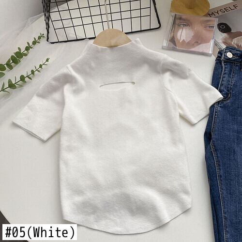 Nomikuma 中空アウトハーフカラー半袖ニット Tシャツ女性春夏 Tシャツトップススリムショートグラフィック Tシャツ ハーフスリーブ スプリング 春物 サマー 夏物 kor91009052411