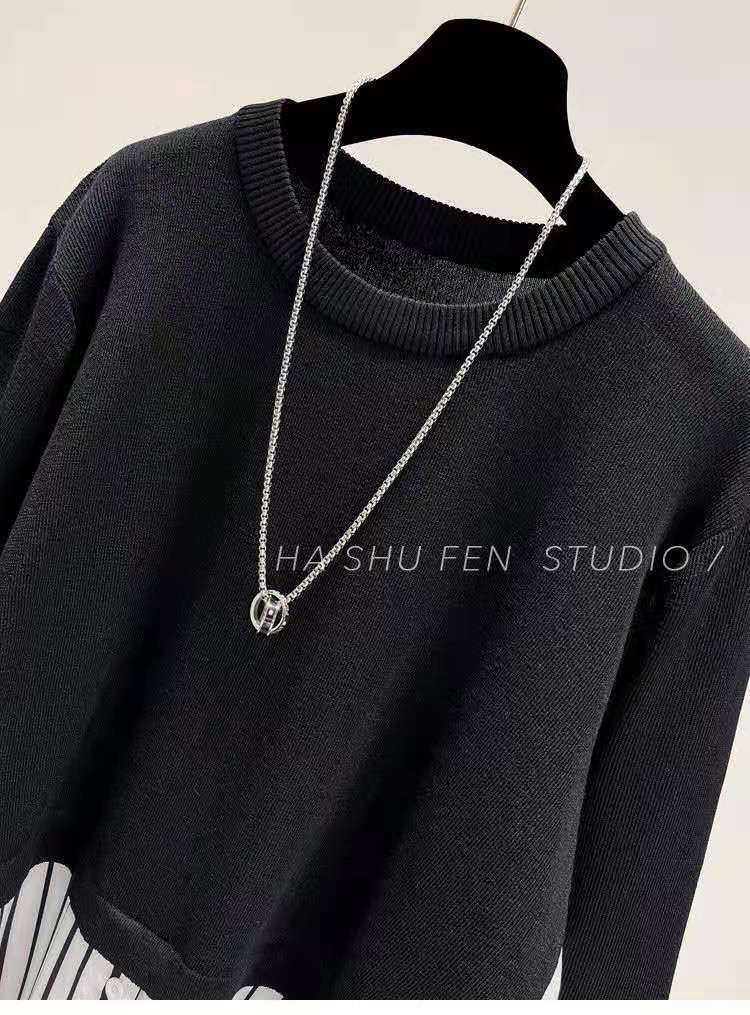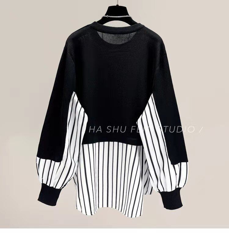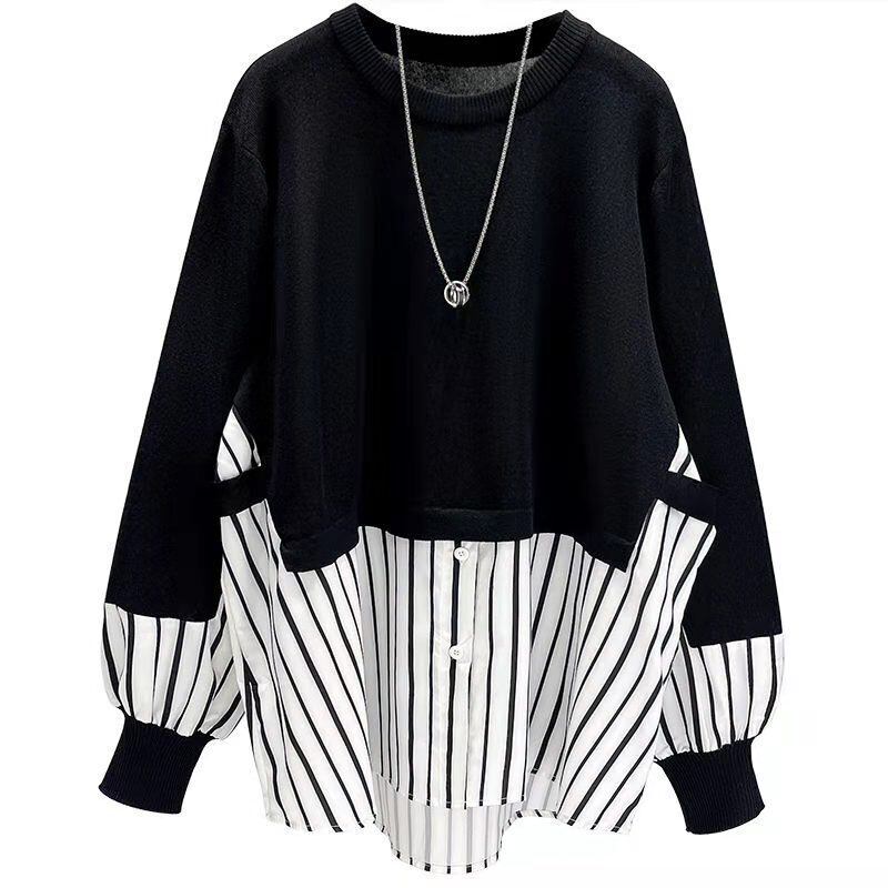 Nomikuma 春秋因果フェイク二枚プルオーバー女性ブラウスパッチワークニットトレーナージャンパー スプリング 春物 オータム 秋物 kor53745102183