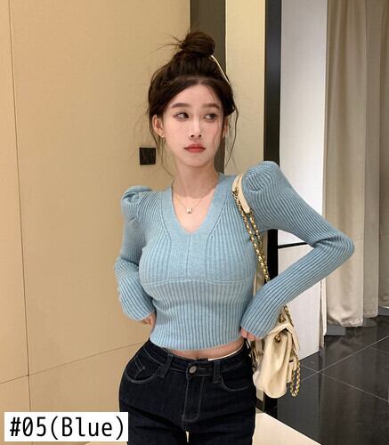 Nomikuma スリムパフスリーブニット Swetaers 女性スリムウエスト底入れニット春シックな V ネックプルオーバーニットトップス スプリング 春物 Vネック kor99735925568