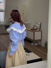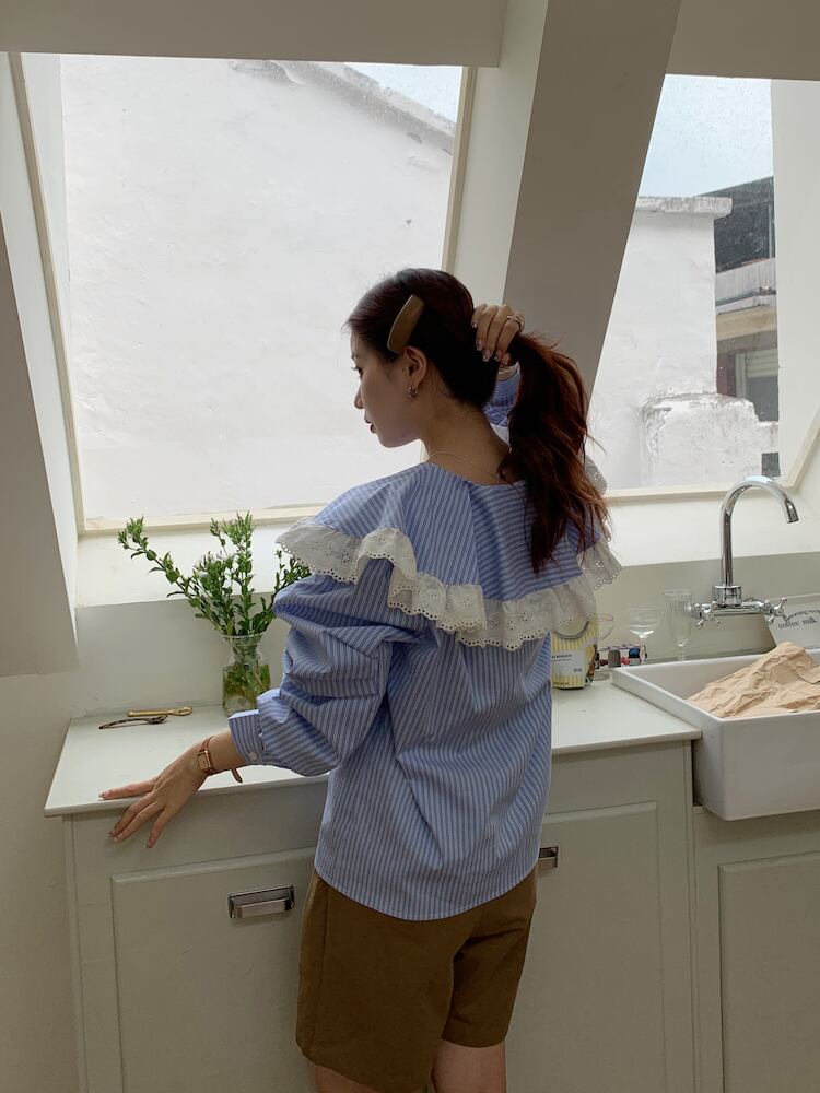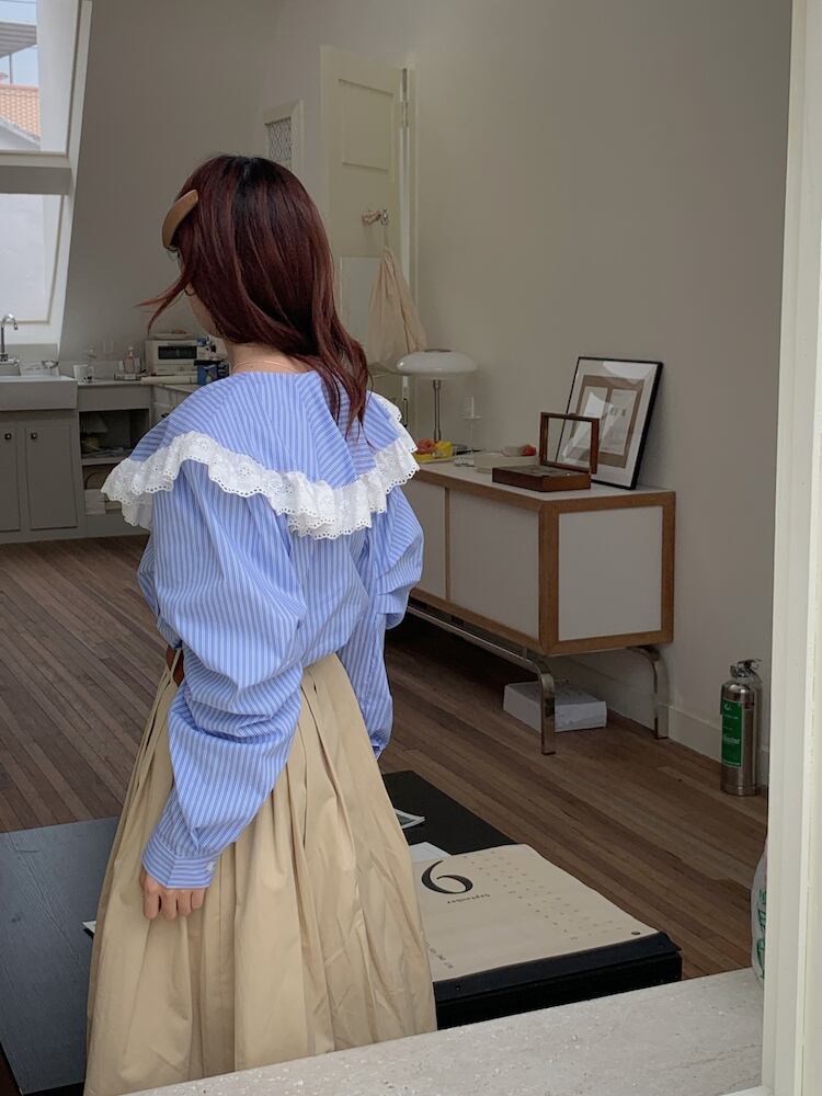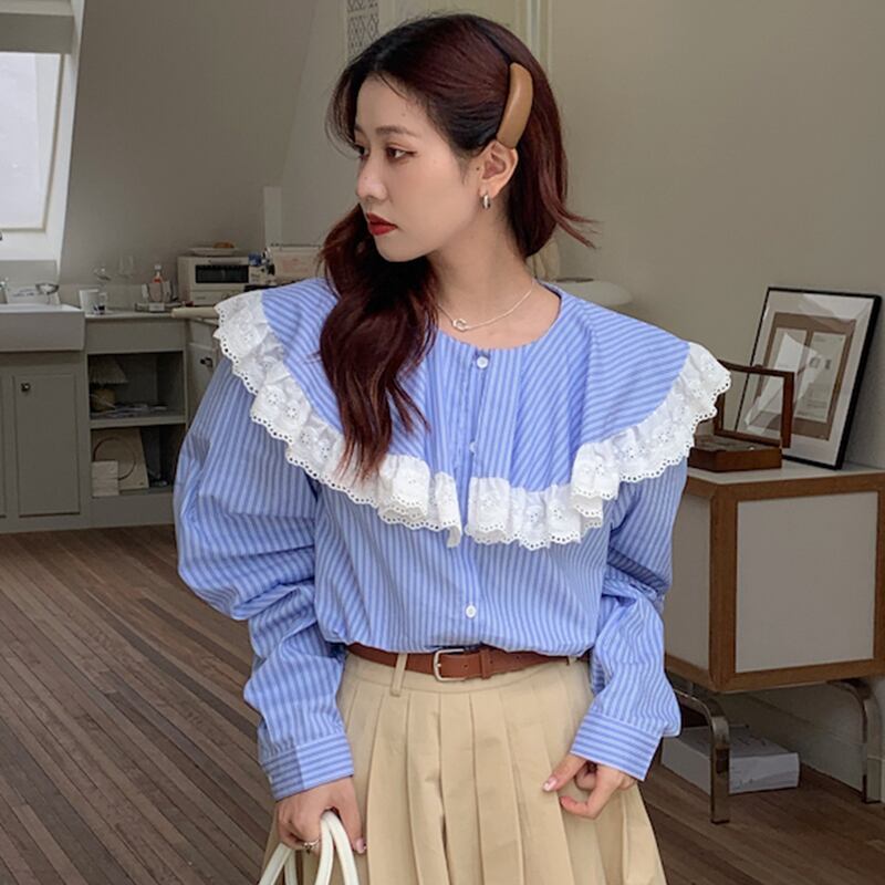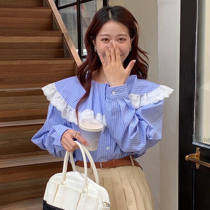 ノミクマ シック レース パッチワーク ピーターパンカラー ブラウス シャツ シック 春 長袖 レディース トップス デ ロング スプリング 春物 kor89211710841