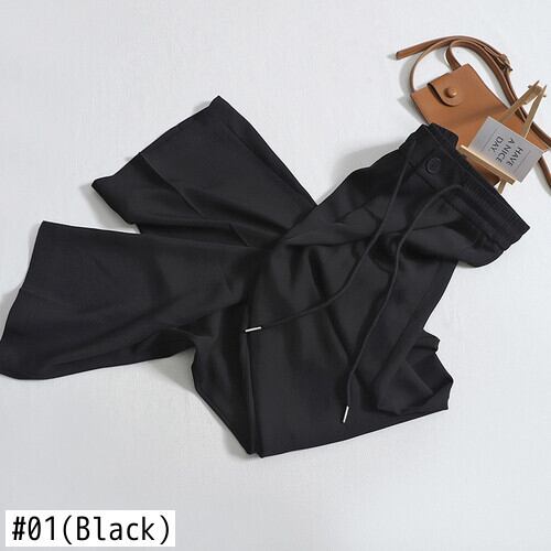Nomikuma 春秋のスーツ長ズボンレースアップ弾性ウエストの女性のズボン因果ワイドレッグパンツ ロング エラスティック 伸縮 スプリング 春物 オータム 秋物 ワイドパンツ kor51989480795