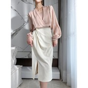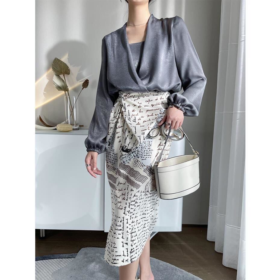 Nomikuma ウエスト ツイスト レディース スカート プリント カジュアル スプリット スカート 春夏 サマー 夏物 kor98605479631