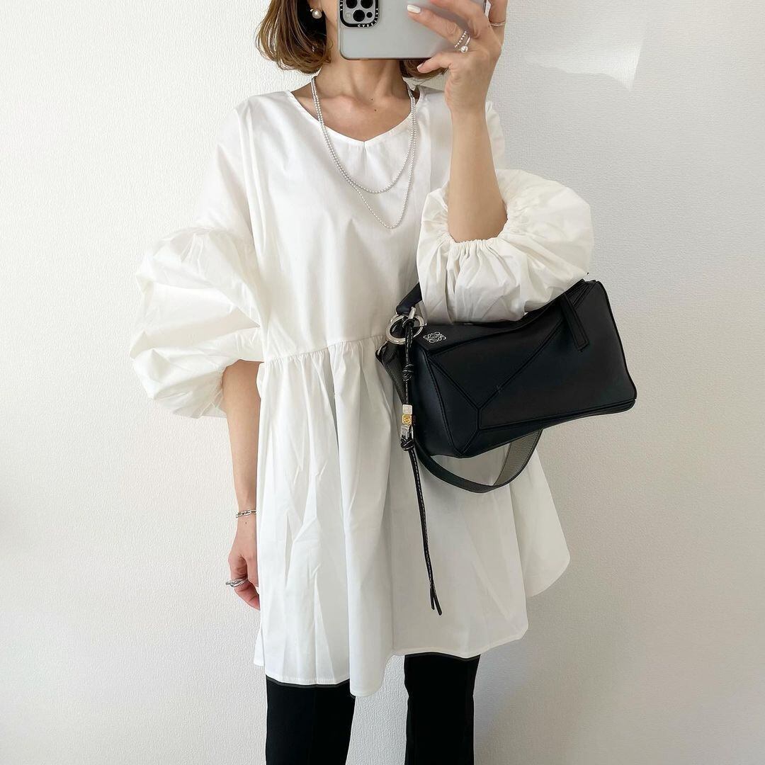 Nomikuma Causal スウィート ランタン スリーブ O ネック ドール シャツ 春夏 ブラウス トップス シック デ モーダ ランタンスリーブ 大人ガーリー キュート カジュアル スプリング 春物 サマー 夏物 Oネック kor83499443563