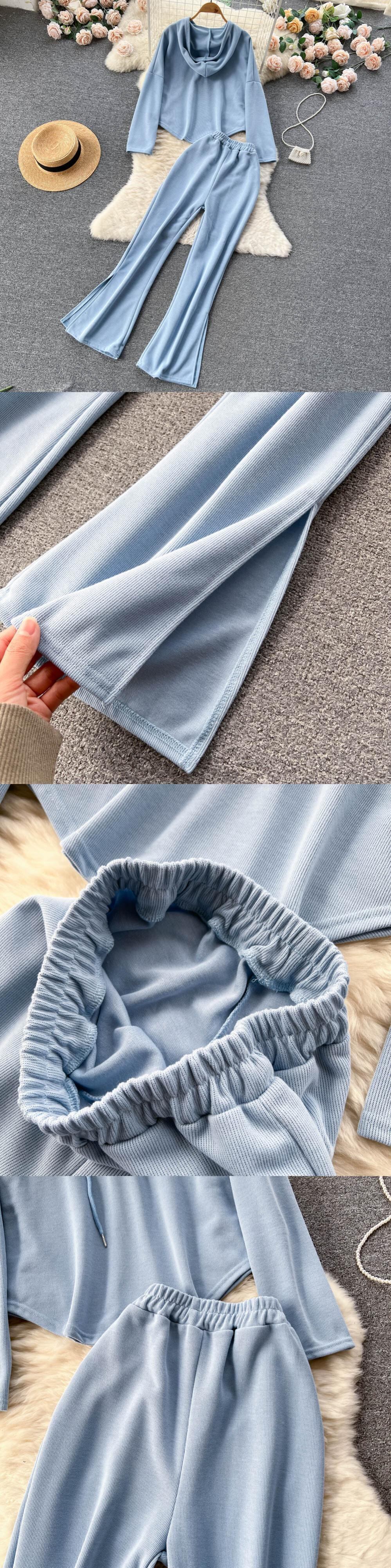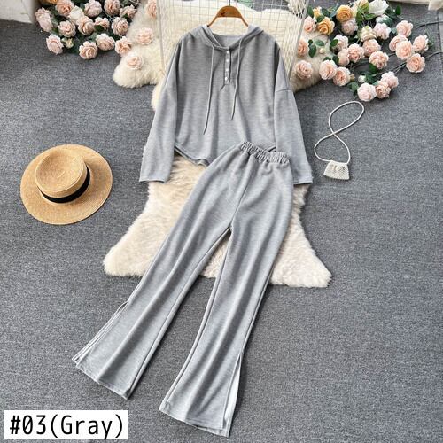 Nomikuma 因果女性衣装女性フード付きプルオーバースウェットシャツコート + スプリットフレアロングパンツ 2 ピース春セット スプリング 春物 kor82979282744