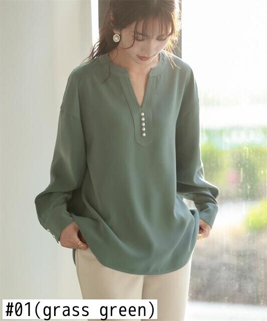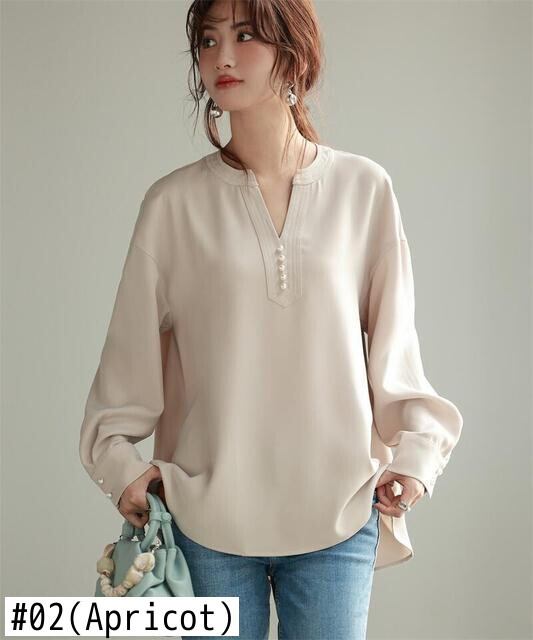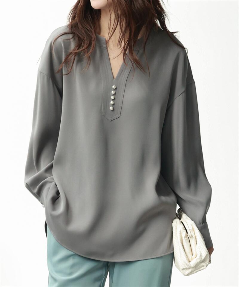 ノミクマ 因果 無地 ビーズ Vネック 長袖 ブラウス シャツ 春夏 トップス デ ロング スプリング 春物 サマー 夏物 ソリッドカラー kor98588904025