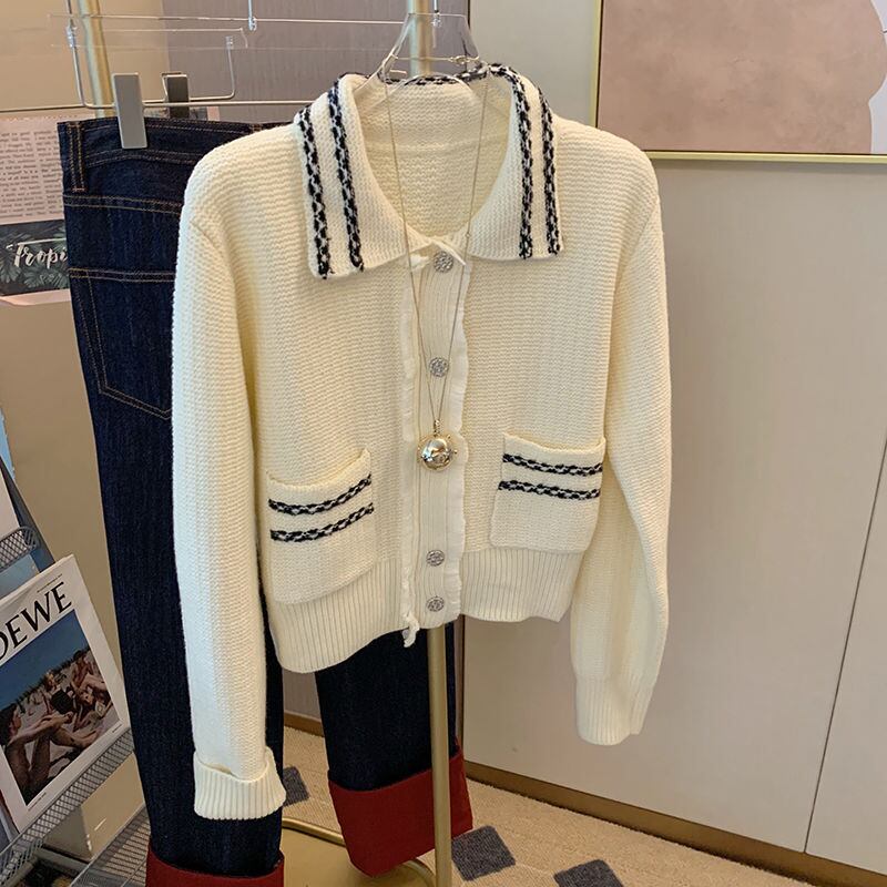 ノミクマ ストライプ ターンダウン カラー ポケット セーター コート 長袖 レディース ニット 春 ニット Caridgans ロング スプリング 春物 kor65640478648