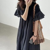 Nomikuma 因果フライングスリーブシックな女性ドレスパッチワークプリーツ A ライン Vestidos 春夏ドレス スプリング 春物 サマー 夏物 Aライン kor5032437742