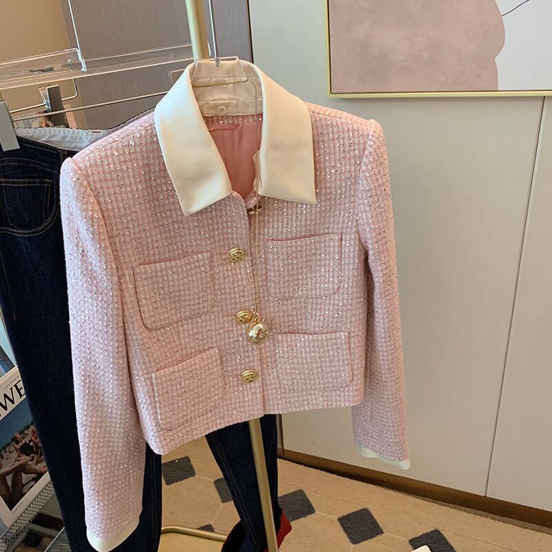 Nomikuma スパンコールショート女性 Coay ヒットカラーターンダウン襟長袖ジャケット秋生き抜くトップス ロング オータム 秋物 kor37047656571