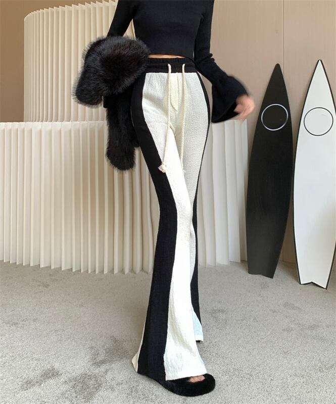 Nomikuma 春夏ブラックホワイトパッチワークヒットカラーワイドレッグパンツレースアップ Wiast 因果女性のズボン スプリング 春物 サマー 夏物 ワイドパンツ kor59795228625
