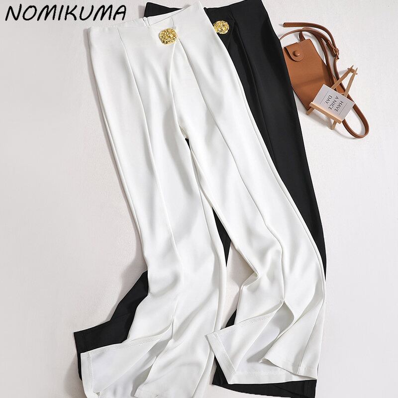 Nomikuma スーツパンツ 春秋 シングルボタン ウエスト長ズボン スプリットフレアパンツ レディース ロング スプリング 春物 オータム 秋物 kor6644568476