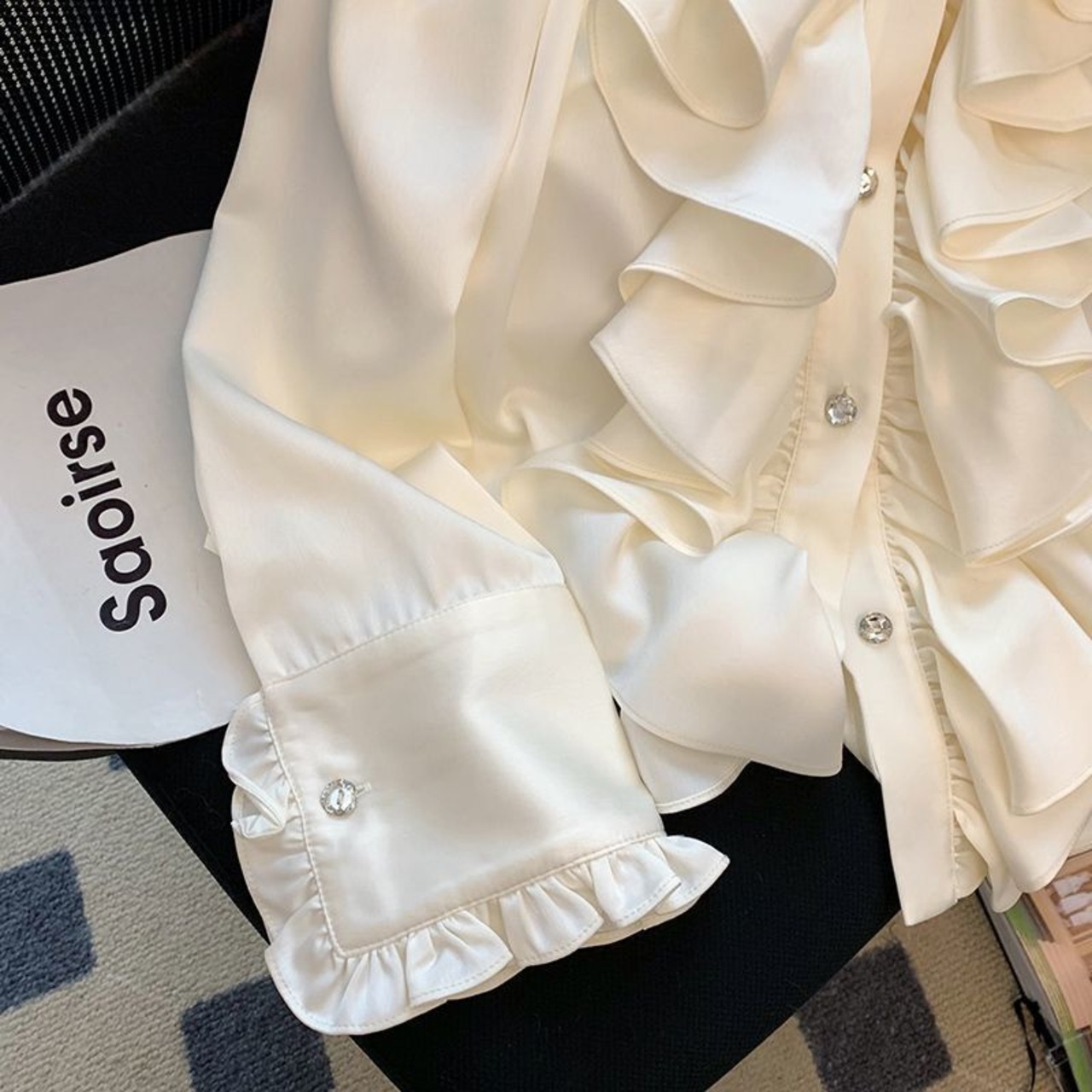 Nomikuma ターンダウンカラー女性ブラウスシックなフリルパッチワークシャツ春夏トップ スプリング 春物 サマー 夏物 kor28603277255
