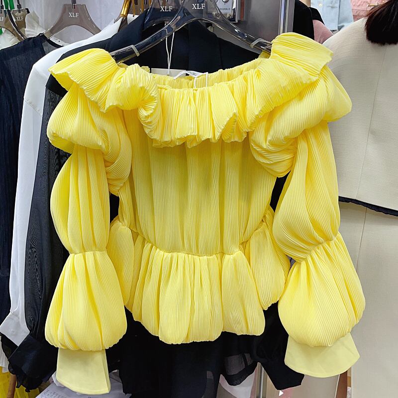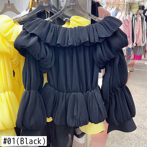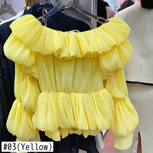 Nomikuma オフショルダー シフォン レディース トップス 春夏 ランタンスリーブ ブラウス シャツ ひだ スリムウエスト スプリング 春物 サマー 夏物 kor54244075770