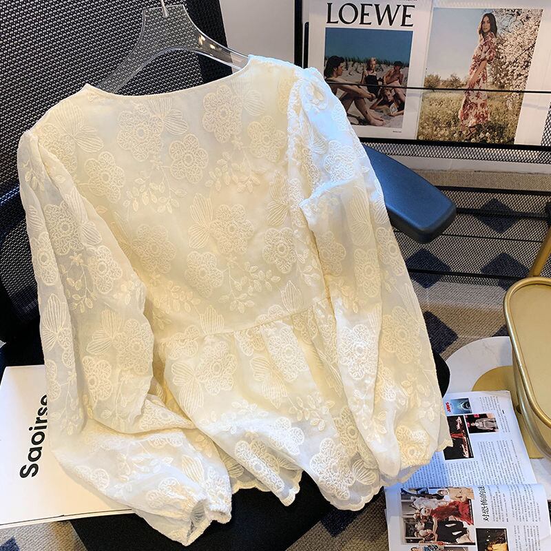 Nomikuma 無地 O ネック レース シャツ レディース 春 ブラウス トップス 長袖 シングルブレスト デ ロング スプリング 春物 Oネック ソリッドカラー kor25599624429