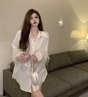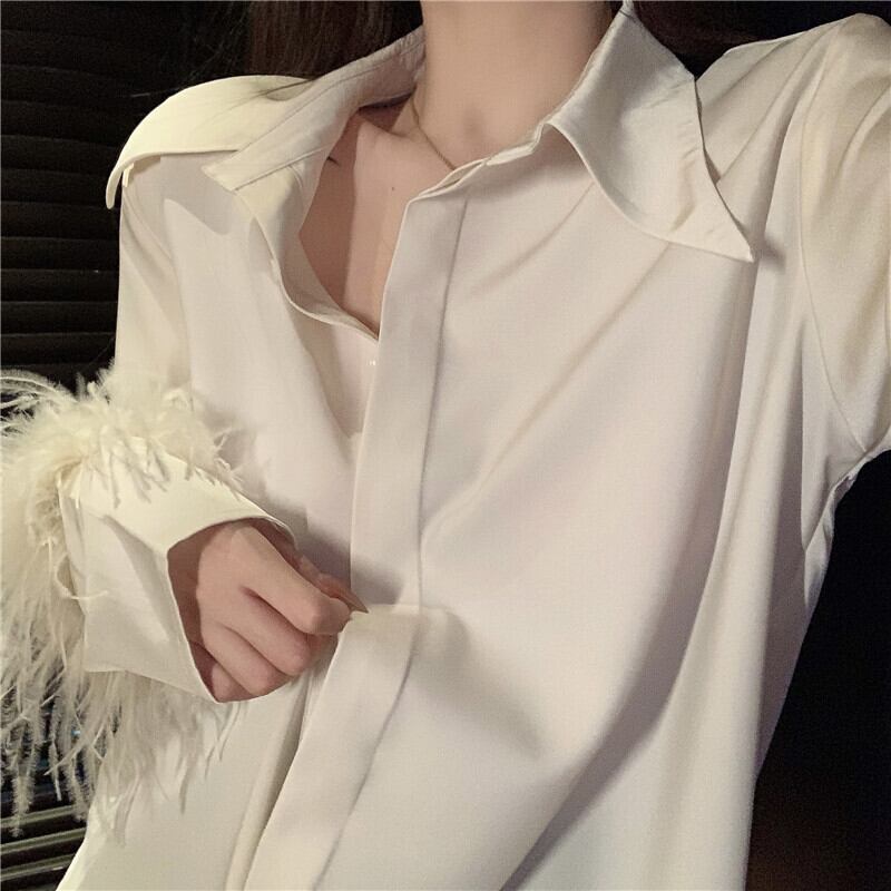ノミクマテル 長袖 因果ブラウス シャツ ミディアムロング ルーズ レディース シャツ 春デ スプリング 春物 kor34757512873