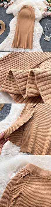 Nomikuma 秋冬 ウエストツイスト くり抜き スリット スリム セクシー ニットスカート 無地 セータースカート オータム 秋物 ウィンター 冬物 ソリッドカラー kor97351330612