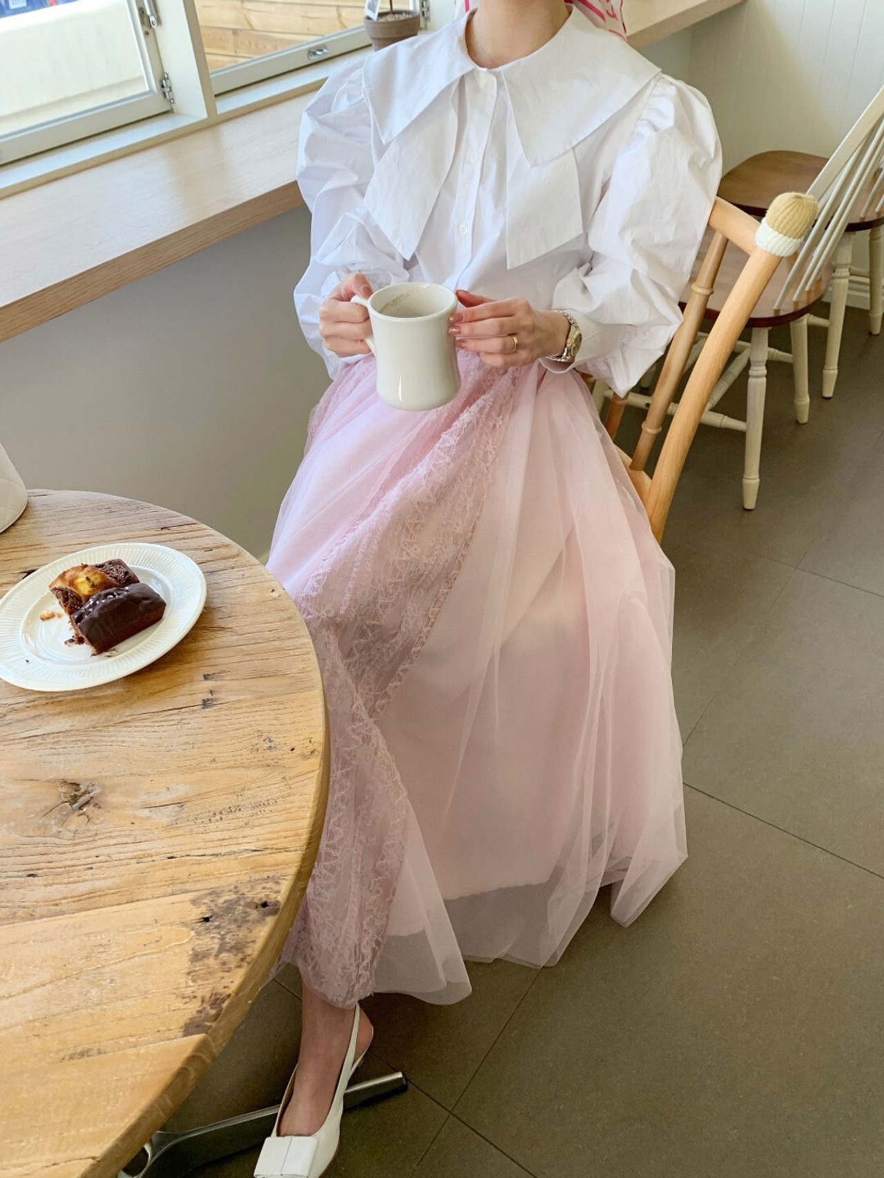 Nomikuma 因果無地提灯袖ブラウストップス女性春ターンダウン襟シャツ無地甘い ランタンスリーブ 大人ガーリー スウィート キュート カジュアル スプリング 春物 ソリッドカラー kor42797652186