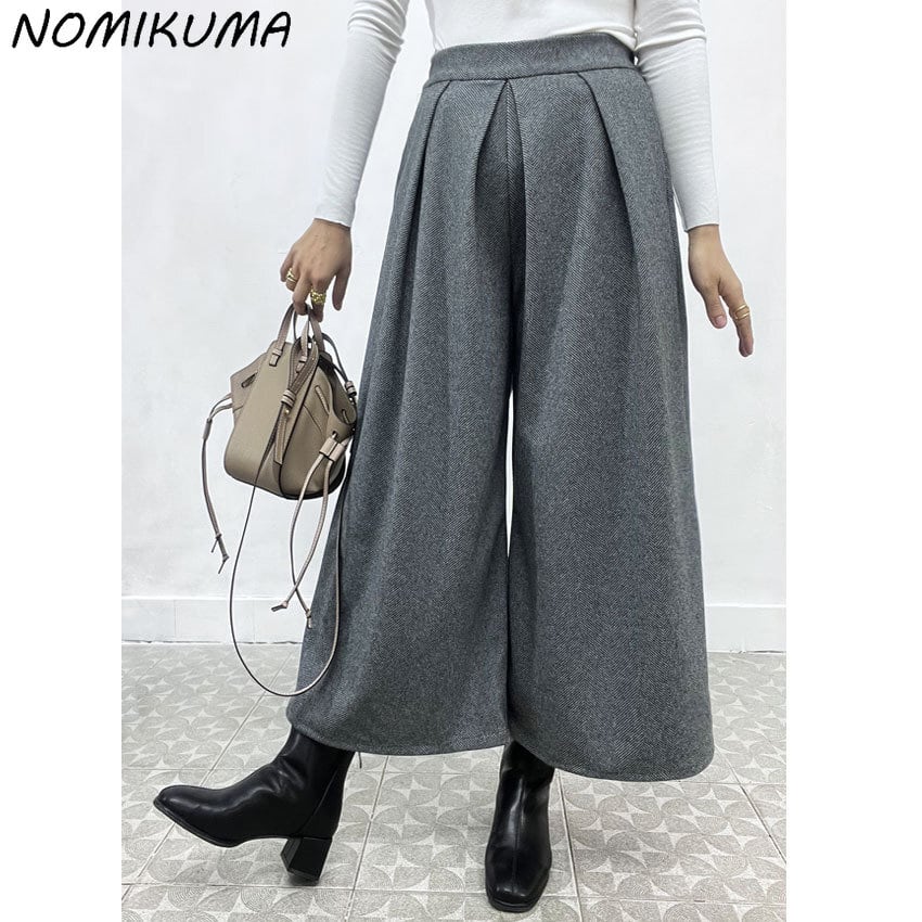 Nomikuma 因果ウエストソリッド春秋の女性のズボンコーランワイドレッグスカートパンツ Pantalones スプリング 春物 オータム 秋物 ワイドパンツ ソリッドカラー kor86668348070