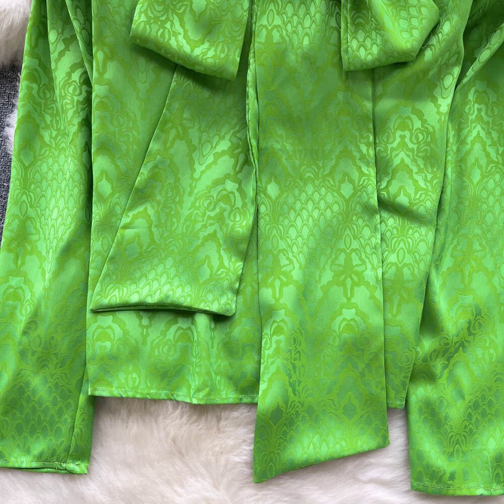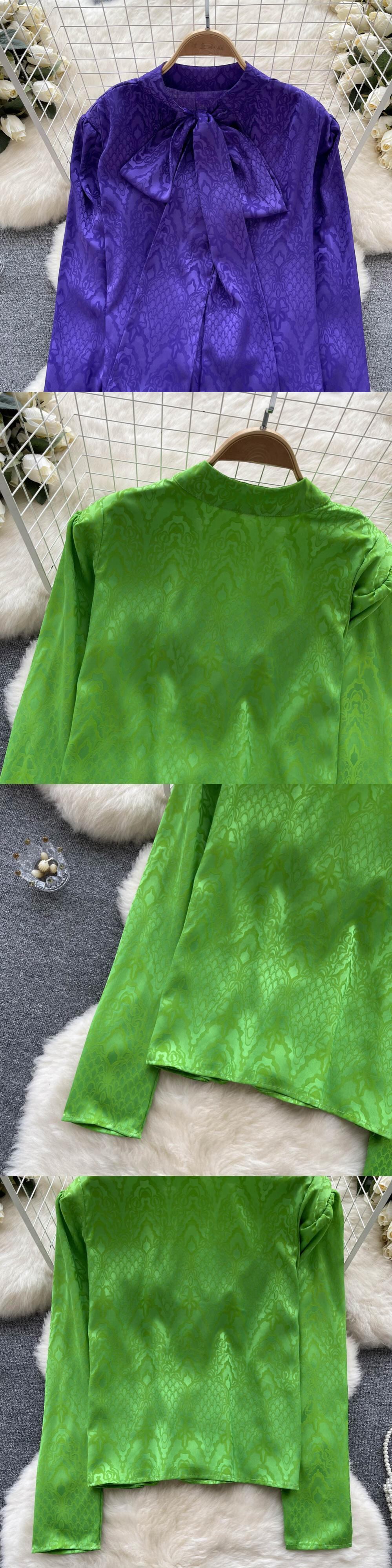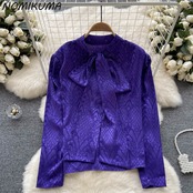 KUSAHIKI 弓包帯ロングスリーブブラウス女性春トップシャツシックデモーダ リボン スプリング 春物 kor40250741340