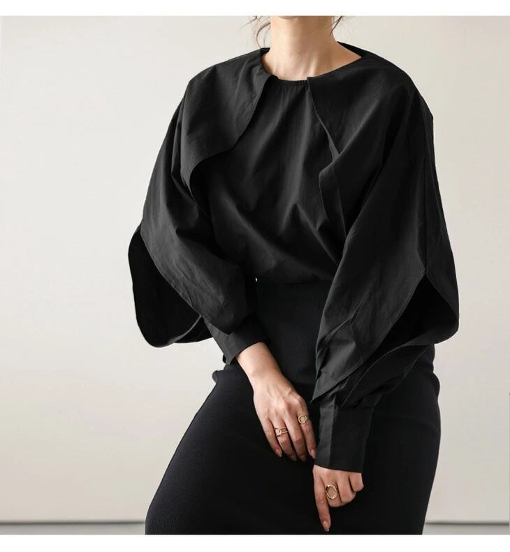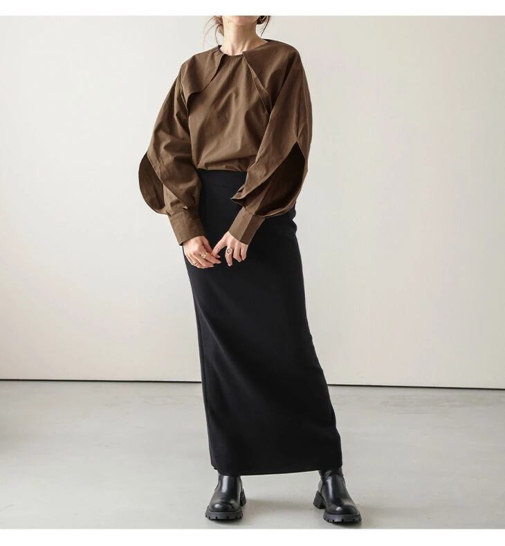 ノミクマ 春 スプリット ランタンスリーブ ブラウス 無地 因果 Oネック プルオーバー シャツ デ スプリング 春物 ソリッドカラー kor45499521619