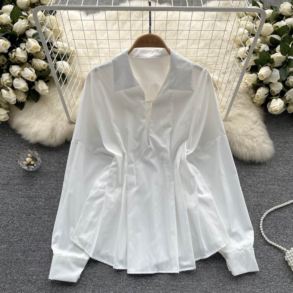 Nomikuma ひだスリムウエスト女性ブラウス長袖 V ネック無地シャツ春秋デモーダ ロング スプリング 春物 オータム 秋物 Vネック ソリッドカラー kor43472599952