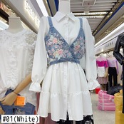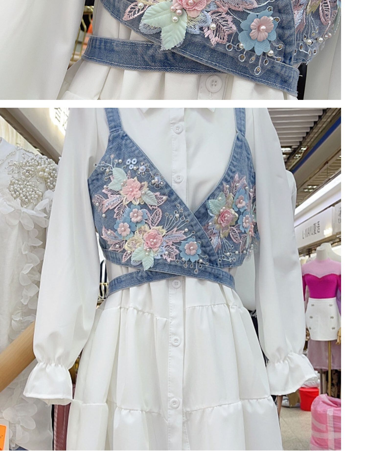 Nomikuma 春夏ツーピース女性セットシックなビーズフローラル Demin 包帯ショートベスト + 長袖因果ブラウスドレス ロング スプリング 春物 サマー 夏物 花柄 kor16697935711