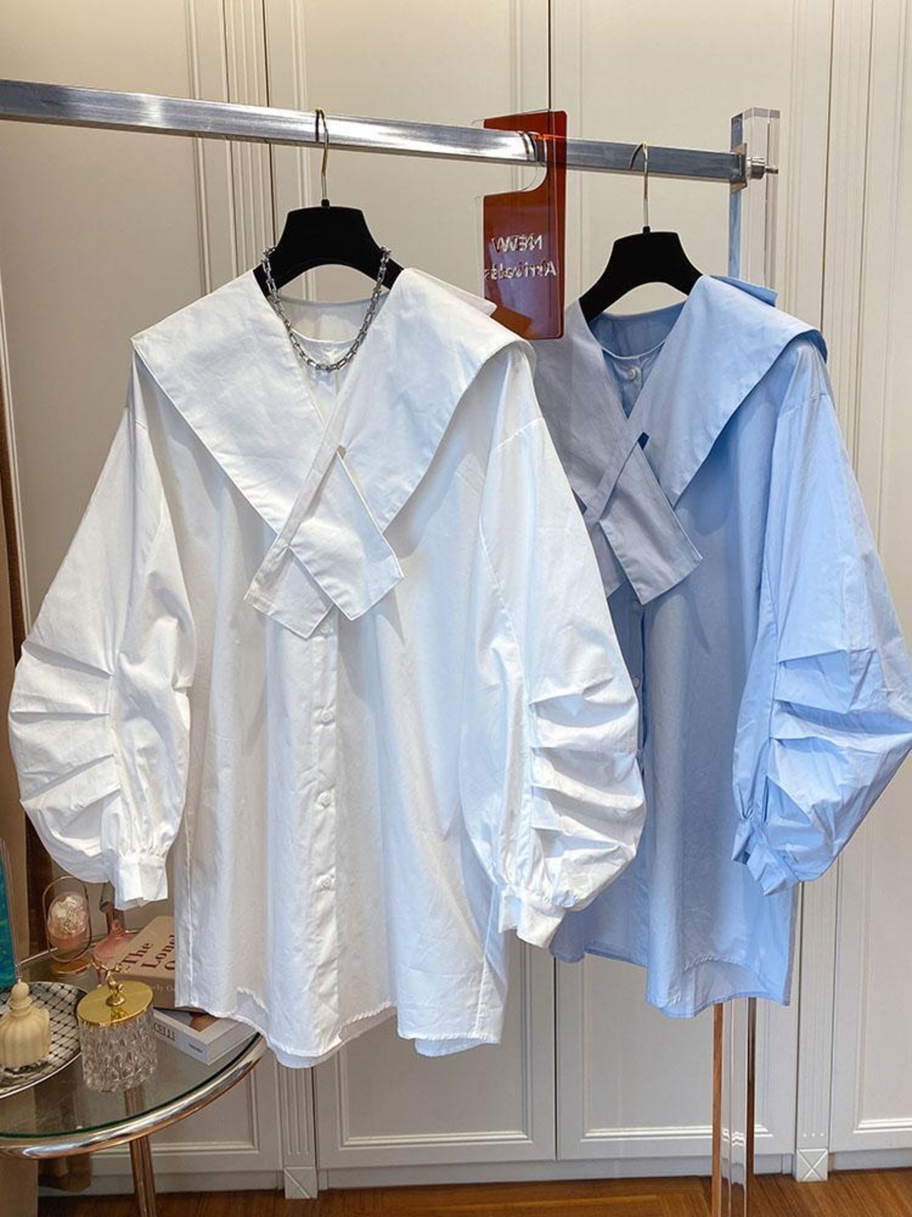 Nomikuma 因果ピーターパン襟パフスリーブ女性ブラウストップスシックな固体シャツ春秋 Feminimos スプリング 春物 オータム 秋物 ソリッドカラー kor12067234662