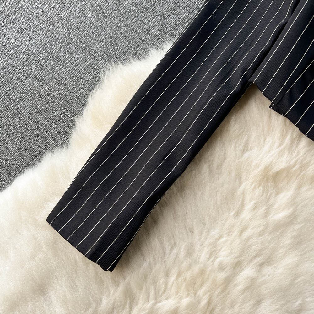 Nomikuma 春夏ストライプセット女性スリムショートブレザーコート + シングルブレストウエストセクシーなスプリットスカート スプリング 春物 サマー 夏物 kor81199981768