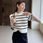 Nomikuma シックな O ネック半袖ストライプ プルオーバー ニット セーター春夏ニット トップス女性プル ショート ハーフスリーブ スプリング 春物 サマー 夏物 Oネック kor73188820398