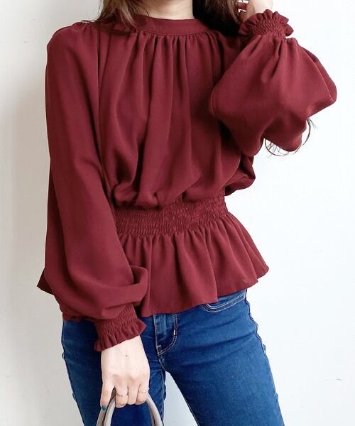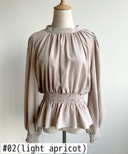 Nomikuma スリム ウエスト フリル レディース ブラウス スタンドネック パフスリーブ シャツ 春 無地 無地 スプリング 春物 ソリッドカラー kor39994053067