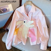 Nomikuma コントラストカラー漫画女性ブラウス因果長袖ターンダウン襟シャツ春トップ ロング スプリング 春物 kor40238391313