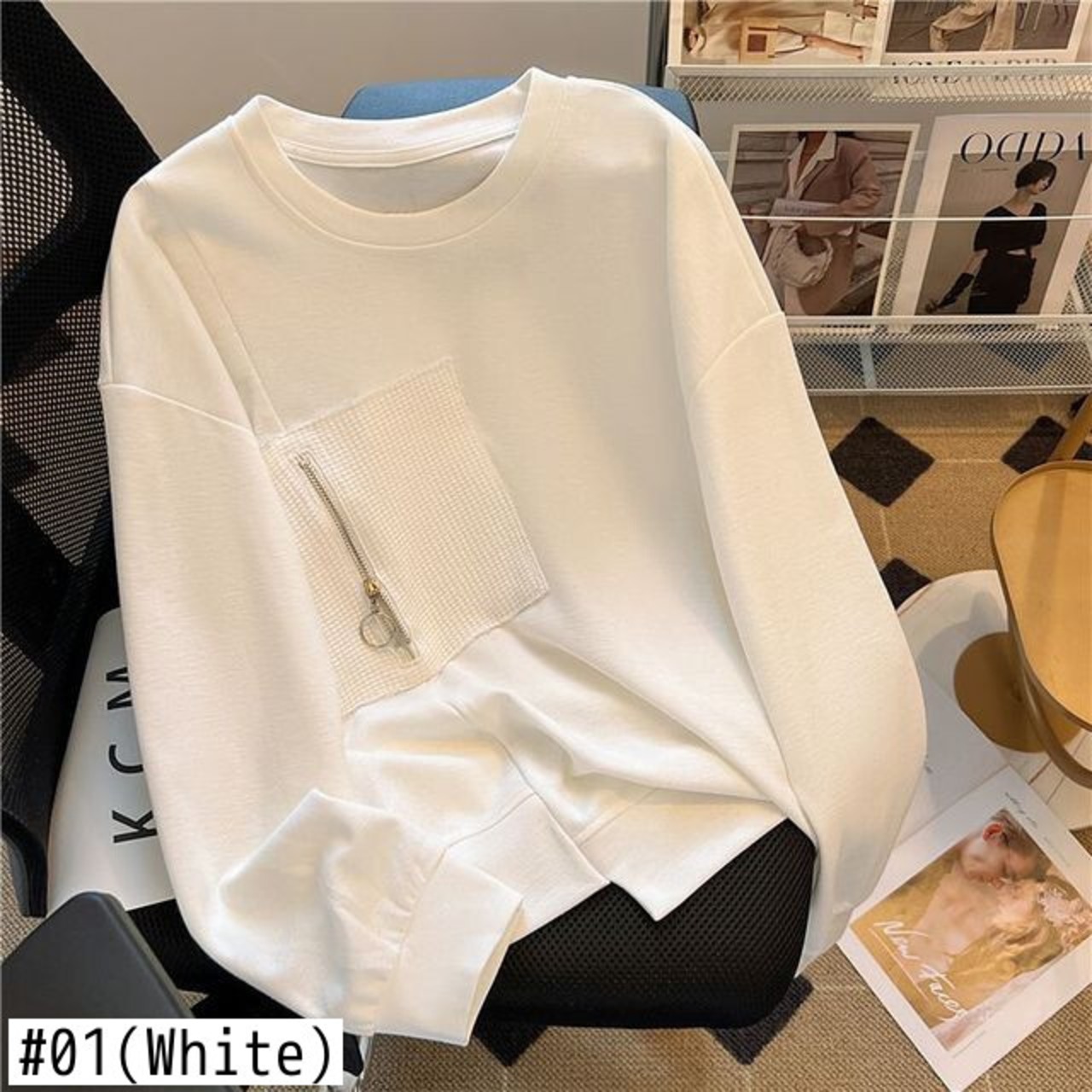 Nomikuma 因果スウェットシャツ女性長袖 O ネックプルオーバージッパーパッチワークパーカートップ Ropa ロング Oネック kor28154317426
